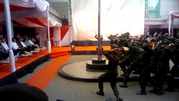 Dalam acara itu juga disajikan pertunjukan dari Duta BPJS yang telah mengikuti pelatihan bela negara bersama TNI AD di Resimen Induk Kodam Jaya atau Rindam Jaya. Mereka menggunakan seragam berwarna hijau tentara dan meneriakkan yel-yel "Revolusi Mental, Revolusi Mental".