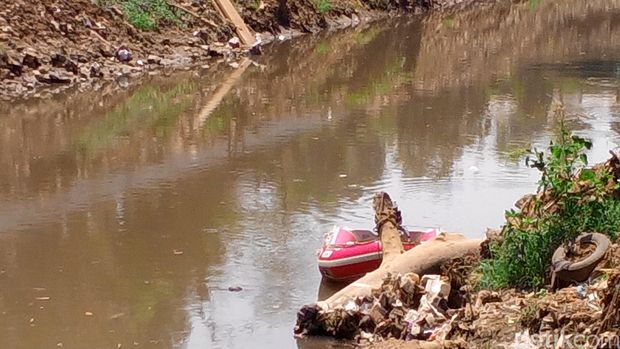 Saat detikcom datang, Jumari tengah berada di atas perahu karet. Dia membersihkan sampah yang berada di Sungai Ciliwung.
