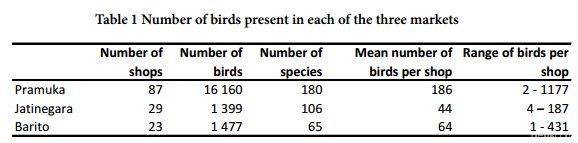 Survei ini dinyatakan sebagai survei burung yang menyeluruh pertama kali pada 3 pasar burung terbesar di Jakarta. Dari ketiga pasar burung itu, Pasar Pramuka memiliki jumlah burung terbanyak, lebih 10 kali lipat dari jumlah burung di Barito dan Jatinegara.