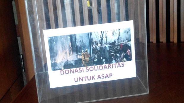 Selain itu, dua kotak transparan juga diletakkan di depan pintu masuk ruang paripurna. Kotak tersebut bertuliskan 'Donasi Solidaritas untuk Asap'.