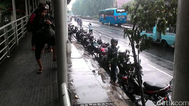 Tampak para pengendara sepeda motor langsung menepi dan berteduh di GOR atau pun Halte TransJakarta. Sementara itu lalu lintas relatif masih lancar. Hujan ringan juga terpantau di kawasan Cawang.