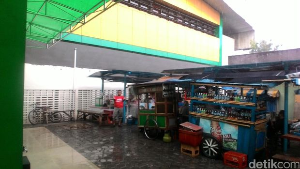 Pantauan detikcom di GOR Otista, Kampung Melayu, Jakarta Timur, Minggu (1/11/2015) hujan turun sejak pukul 12.15 WIB. Para warga dan pedagang kaki lima di sekitar lokasi langsung berteduh.