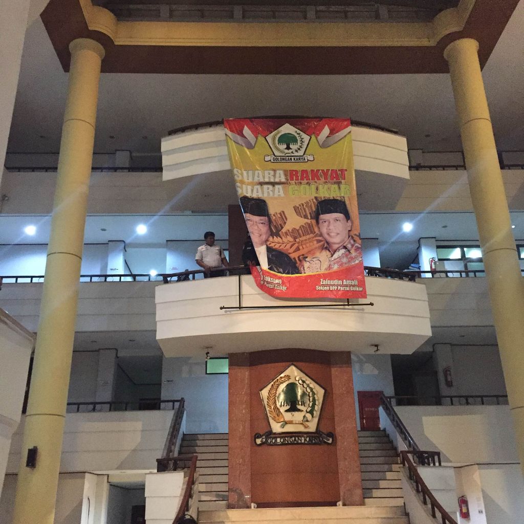 Agung lalu meminta spanduknya dipasang lagi. Petugas kantor DPP lalu memasang lagi spanduk itu.