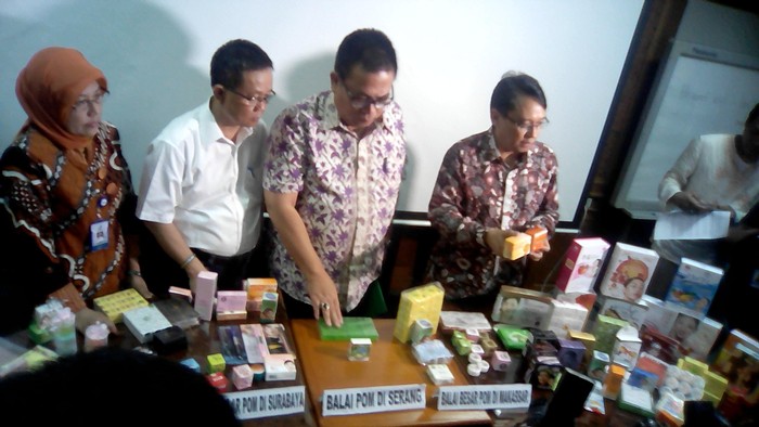 "Ada sabun muka (pemutih) yang notifnya dari luar negeri. Tapi ternyata diproduksi di Tangerang. Produk ibi dibuat seolah-olah legal," papar Roy. Selain itu tim operasi juga menemukan sarana (outlet) yang menjual kosmetik tersebut dengan daring (online).
