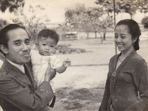 Bung Tomo menggendong Megawati disaksikan sang istri (dok. Perpusnas)