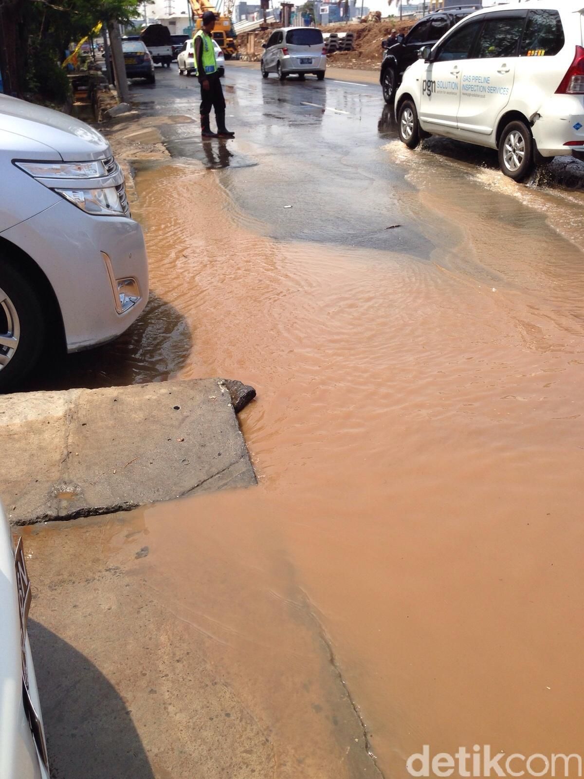 Pantauan detikcom, Senin (9/11/2015) sore genangan air membanjiri satu ruas lajur di Jalan Raya Pluit Barat, Jakarta Utara. Ketinggian air bervariasi mulai dari lima sampai sepuluh sentimeter. Namun setelah dilakukan perbaikan oleh teknisi PT Palyja, genangan air mulai berangsur surut secara perlahan.