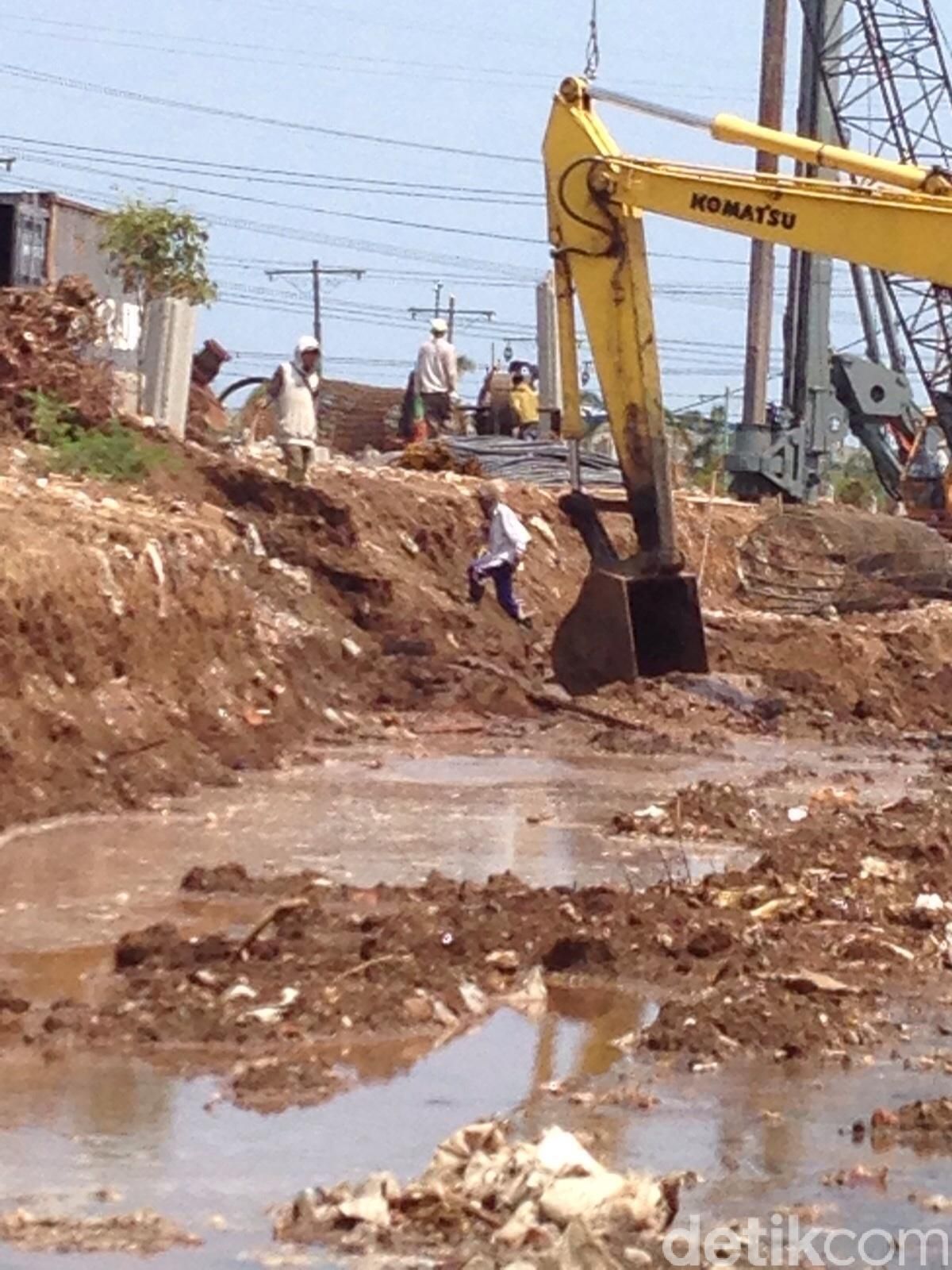 "Kejadiannya kemarin karena kena gerus mesin bekhoe untuk memasang tiang pancang sheet pile penahan banjir," ujar Sekretaris Kelurahan Pluit Ahmad Rosiwan kepada detikcom di lokasi genangan air.