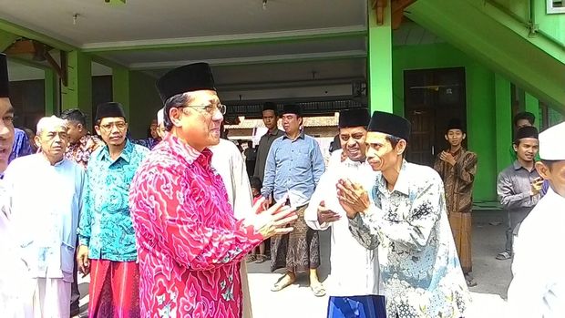 Irman Gusman disambut warga pesantren (Yulida Medistiara/detikcom)
