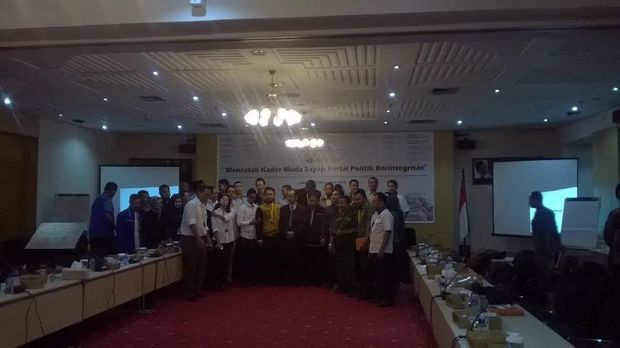 Untuk itu, KPK menggandeng para pemuda yang tergabung dalam organisasi sayap partai untuk berkomitmen membentuk parpol yang berintegritas dan bebas korupsi. Hampir semua organisasi pemuda sayap parpol hadir dalam acara ini.
