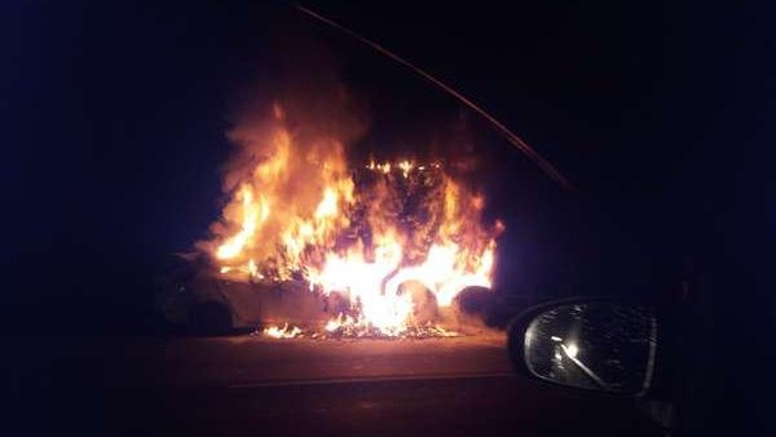 Mobil Ford putih yang diketahui bernopol B 512 DBS tersebut terbakar hebat setelah menabrak dan masuk hingga ke kolong truk. Saat mobil Ford hendak dievakuasi setelah api padam, petugas sempat kesulitan.