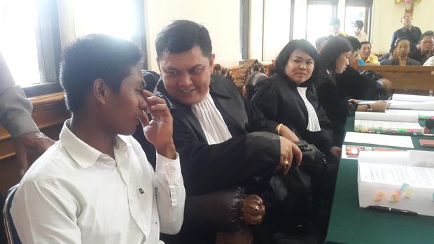 Agustinus Tae dan pengacaranya Haposan (Foto: Putri Akmal/detikcom)