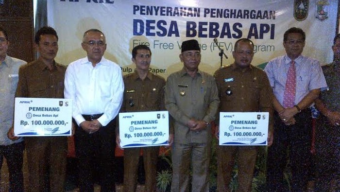Dari 9 desa tersebut, lanjut Tony, ada 5 desa yang dianggap berhasil dalam mencegah kebakaran lahan. Kelima desa tersebut adalah Desa Pelalawan luas kebakaran hanya 0,5Β hektare, penghargaan diberikan Rp 50 juta. Desa Koala Tolam luas kebakaran 0,15 hektare terima Rp 50 juta dan Desa Teluk Binjai luas kebakaran 0,7 hektare juga diberikan Rp 50 juta.