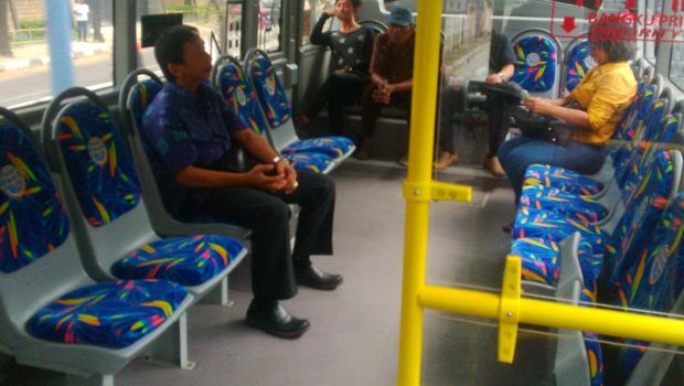 Bagian dalam bus Transjabodetabek (Foto: Aditya Mardiastuti) |