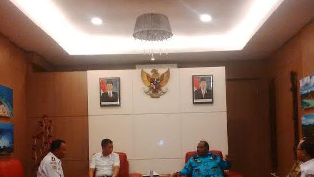 Jonan disambut Wali kota Sorong, Ec. L. Jitmau, anggota Komisi V DPR RI yang membidangi perhubungan, Ellion Numberi dan Jazilul Fawaid.