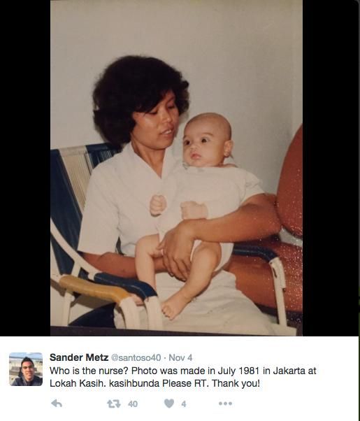 "Who is the nurse? Photo was made in July 1981 in Jakarta at Lokah Kasih. kasihbunda Please RT. Thank you!" tulisnya di laman twitter.
