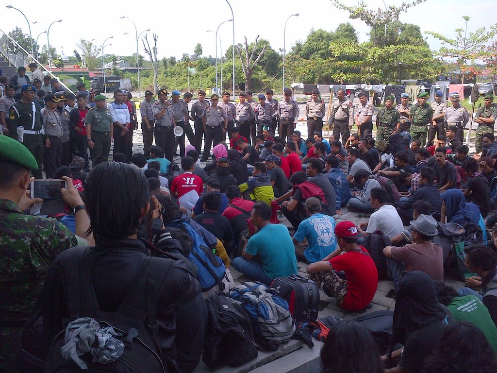 Para mahasiswa dilkumpulkan di tanah lapang di arena kongres