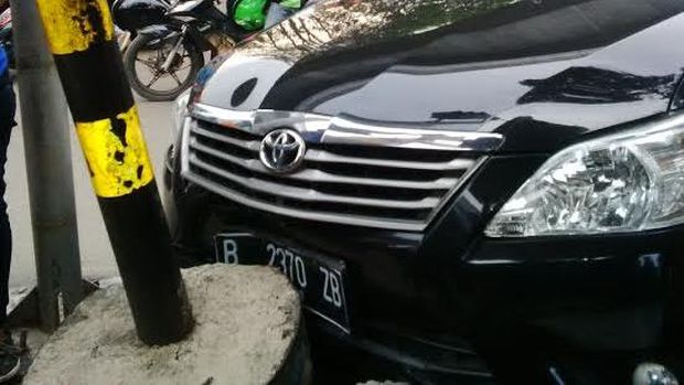 Mobil ini menabrak tiang (Idham/detikcom) |
