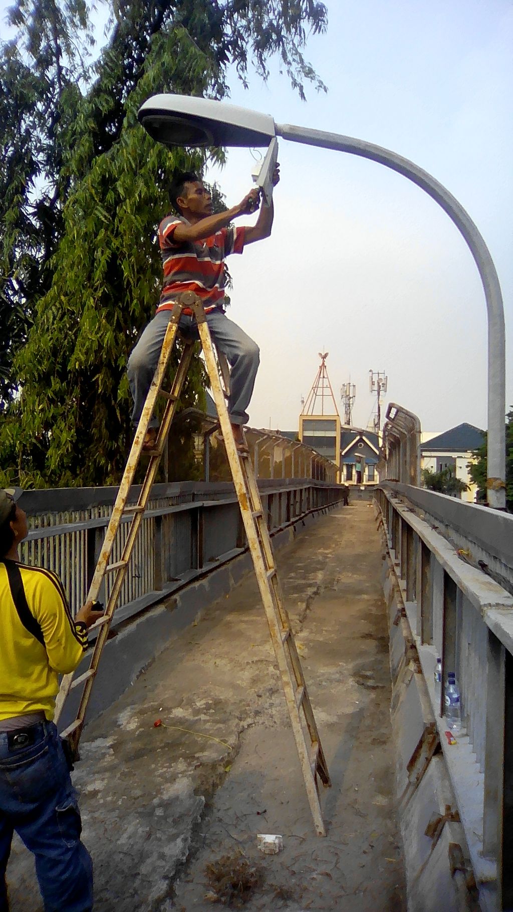 "Tiga lampu di tengah kita buat lebih terang, dari 70 Watt kita ganti ke 150 Watt. Dan dua lampu tambahan di sisi kanan-kiri JPO kita tambahkan dua lampu tembak 400 Watt," ujar Mahrup salah satu pekerja dari Sudin Perindustrian dan Energi di JPO Lebak Bulus, Jakarta Selatan, Rabu (25/11/2015).