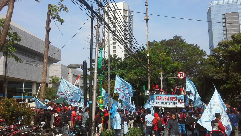 "Kami sudah mencoba bertemu gubernur kami. Tapi kami diabaikan," ujar Koordinator Lapangan dari DPC FSP LEM FSPSI Jakarta Timur Endang Hidayat.