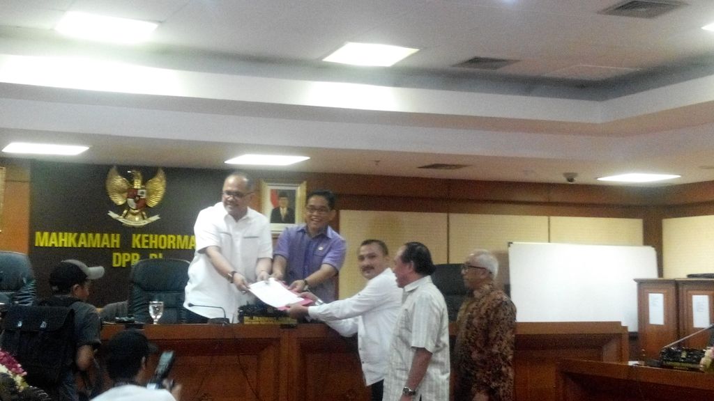 Penyampaian dukungan itu dilakukan di ruang rapat MKD, Gedung DPR, Senayan, Jakarta Pusat, Jumat (27/11/2015). Belasan perwakilan tokoh yang hadir diterima oleh Wakil Ketua MKD Junimart Girsang dan anggota MKD dari PAN, Bakrie.
