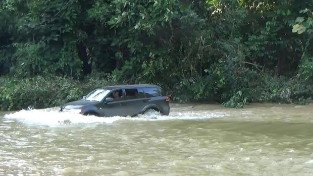 Menurut dia, menyeberangi sungai bukan dengan sampan atau kapal, tapi mobil harus masuk ke dalam sungai.