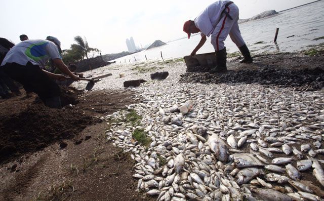 Pagi ini, Selasa (1/12/2015) ribuan ikan sudah tidak tampak di Pantai Ancol. Ikan-ikan itu sudah dibersih dibuang atau dikubur. Tapi bau amis masih menyeruak.