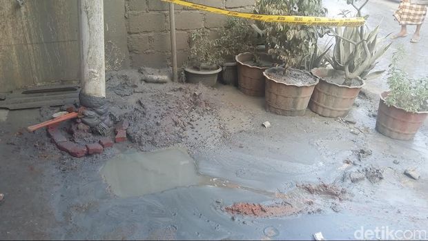 "Ini tadi ada yang mengebor sumur baru 30 meter, yang keluar bukan air tapi malah seperti gas. Terus bornya mental sampai kena muka," kata salah seorang warga yang ada di lokasi.
