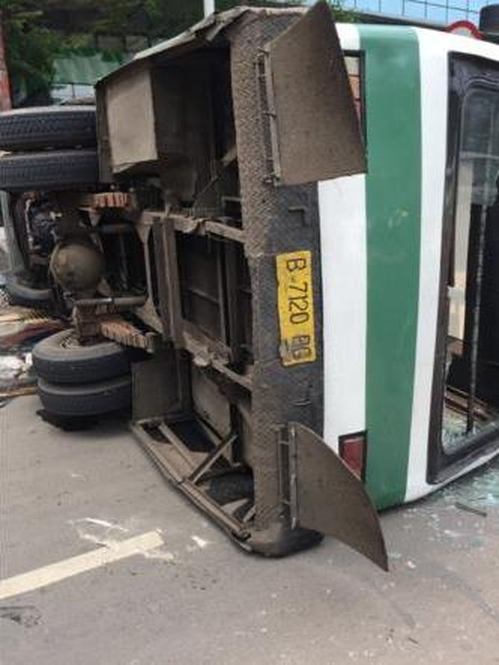 "Korban Kopaja terbalik di bawah JPO samping Surya Plasa Sudirman yang meninggal dunia 1 orang, luka berat 7 orang," demikian laporan TMC Polda.