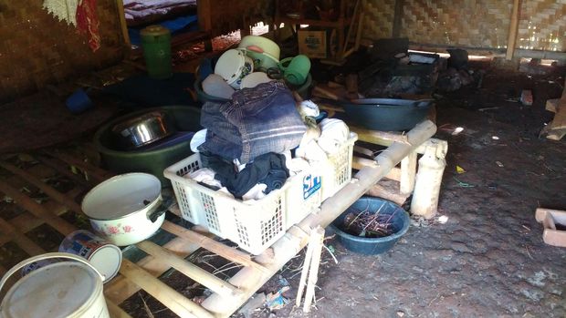 "Nggak ada kamar mandi, kalau keluarga mau mandi kita numpang atau ambil air ke tetangga. Masak pakai tungku yang sekaligus dijadikan tempat penyimpanan pakaian," lirih Frans.