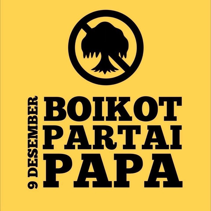 #BoikotPartaiPapa beredar bersama sebuah gambar dengan tulisan serupa dengan latar warna kuning. Ada juga gambar pohon beringin yang disilang. Selain itu ada tulisan 9 Desember sebagai penanda waktu pelaksanaan pilkada serentak.
