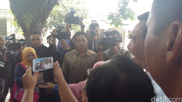 Di TPS 46, Kelurahan Sawah Lama, Ciputat, Luhut dan Tito langsung dikerubuti masyarakat yang didominasi para ibu. Mereka berebut bersalaman dan berfoto bersama.