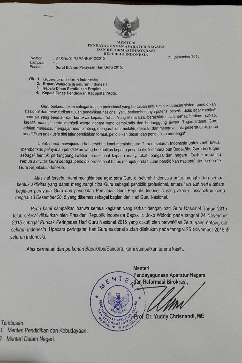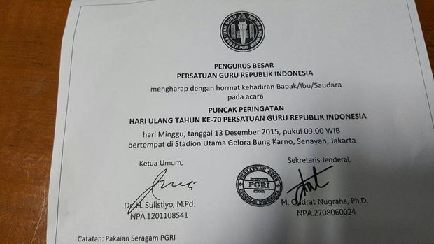 (Baca juga: Mendikbud Tegaskan Acara HUT PGRI 13 Desember di GBK Bukan Acara Pemerintah)