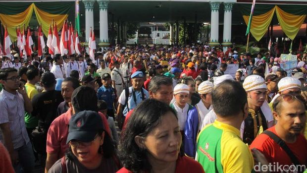 Menurut dia, peserta mengenakan pakaian tempo dulu alias jadul, atau pakaian khas kelompok seni dan budaya atau pakaian seragam unit kerja, instansi atau kelompok sosial lain. Rute dengan berjalan kaki sejauh lebih kurang 6 km dimulai dari pagelaran menuju kampus UGM di Bulaksumur.