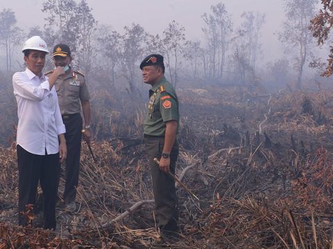 Presiden Jokowi meninjau langsung lokasi kebakaran hutan di kawasan Ogan Komering Ilir Sumatera Selatan, Minggu (6/9/2015). Foto: Pool/Setpres