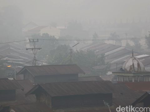Kabut asap akibat kebakaran hutan menyelimuti Padang, Sumatera Barat, Kamis (8/10/2015). Foto: Grandyos Zafna/detikcom |