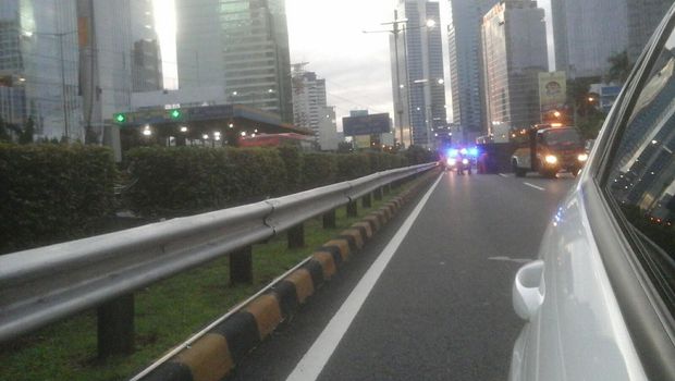 "Saat ini lalu lintas kondisinya padat, kurang lebih sampai 2 kilometer. Kejadian di KM 7 itu di antara Kuningan dan Semanggi," ujar Rico.