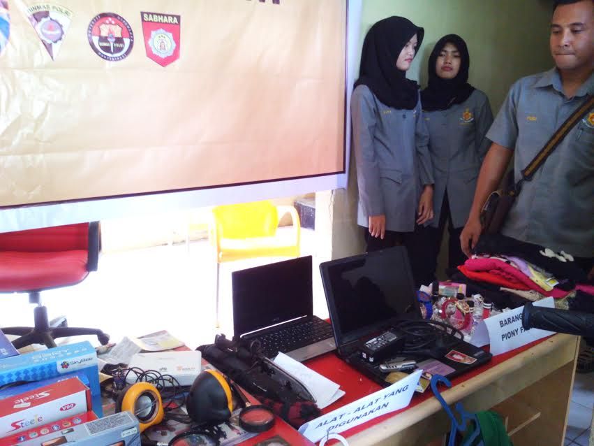 Barang Bukti yang diamankan dari kedua tersangka yaitu dua pisau sangkur yang digunakan untuk mencongkel TKP dan satu buah pahat. Sedangkan barang yang berhasil dicuri dari TKP Toko Pernak Pernik di antaranya dua laptop, dua unit handphone berbagai merk dan sebuah tas travel.