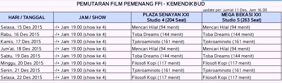 Berikut judul dan jadwal pemutaran film: