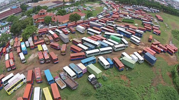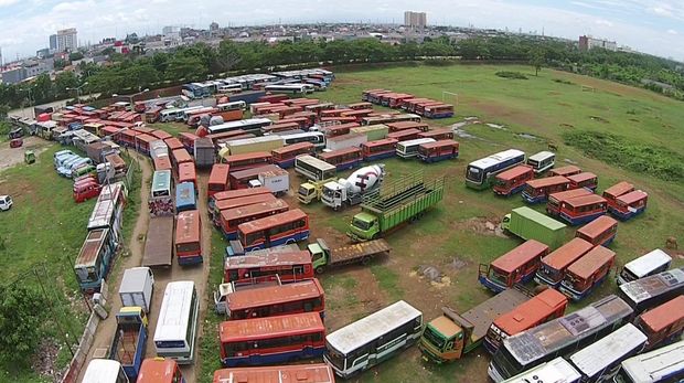 Salah satu lokasi yang paling banyak menampung Metromini bermasalah itu ada di Rawa Buaya, Cengkareng, Jakarta Barat. Tampak selain Metromini, puluhan Kopaja, bus ukuran sedang serta besar, hingga truk terparkir di lahan itu.