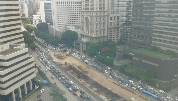 Seperti yang terjadi di ruas Jl Sudirman, Jakarta, Rabu (23/12/2015) siang ini. Dari sebuah gedung di ruas Sudirman bisa terlihat kepadatan lalu lintas yang terjadi.