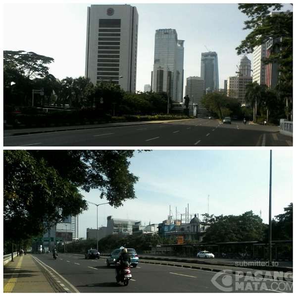 Jalan Jenderal Sudirman lengang (Foto: Natadipradja/pasangmata.com) |