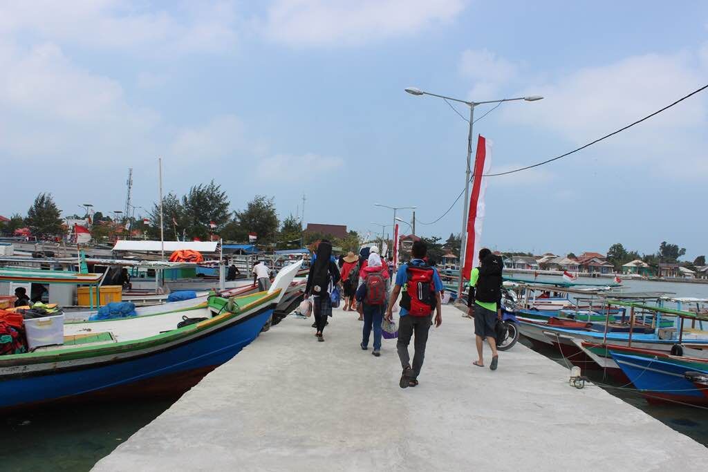 Dari foto yang dikirim Hafiz, tampak warga yang sedang berjalan di sepanjang dermaga menuju kapal untuk menyeberang. Pulau Harapan dan Pulau Pari menjadi tujuan favorit wisatawan.