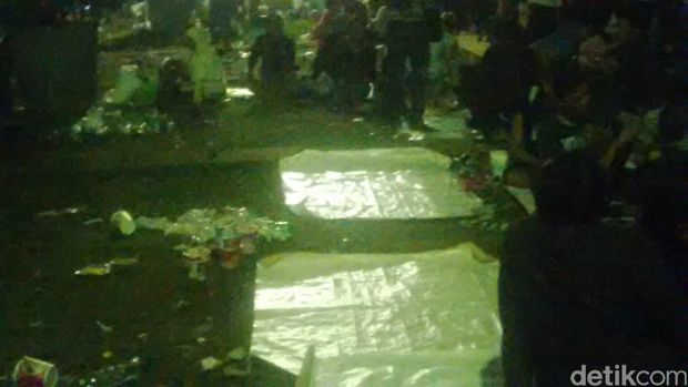 Petugas kebersihan diperkirakan bakal kerja keras membersihkan sampah akibat aktivitas warga dari pesta perayaan tahun baru ini. Hampir di sekitar lokasi area Monas, sampah berserakan. Lokasi terparah berada di sisi barat dan utara.