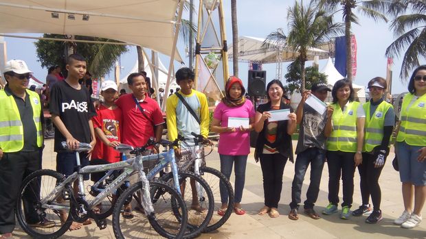 Selain Manijan, ada dua orang lain yang juga mendapatkan sepeda. Gerakan Bersih-bersih Ancol yang berlangsung dalam waktu satu jam ini berhasil mengumpulkan sekitar 300 kg sampah.
