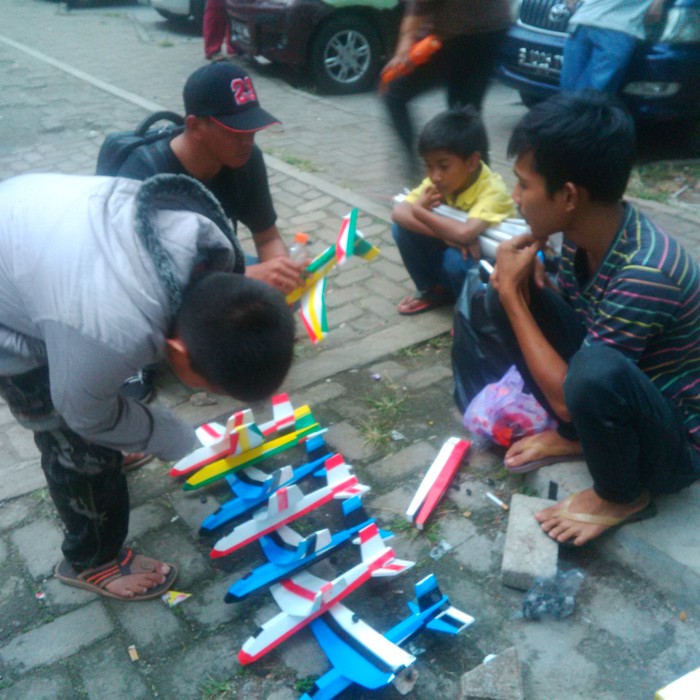 Kesempatan liburan ini tak dilewatkan oleh Dika (21). Pria yang sehari-hari bekerja sebagai sopir pribadi ini memanfaatkan waktu libur sekolah untuk berjualan. Ia menjajakan pesawat mainan dari styrofoam di kawasan TMII.