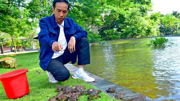 Presiden Jokowi melepas kodok di Kebun Raya Bogor, Minggu (3/1/2016). Foto:Agus Suparto |