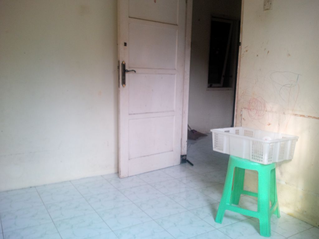 Di salah satu sudutnya ada kardus dan beberapa sapu. Sedangkan di dalam kamar di sisi baratnya, hanya ada kursi plastik dan sebuah keranjang kosong.