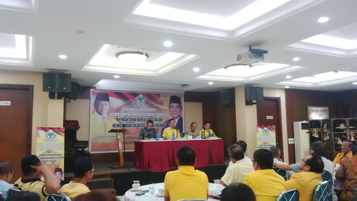 Hadir dalam pertemuan tersebut Ketua Dewan Pertimbangan Golkar versi Munas Ancol, Siswono Yudohusono dan pakar hukum tata negara Refly Harun. Agung menyebut bahwa partai beringin tersebut dalam kondisi yang merisaukan dan harus segera diselamatkan.