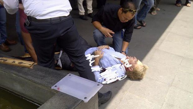 Dalam foto yang diambil warga, ada beberapa pria tergeletak di dekat Pos Polisi Sarinah. Mereka korban yang dilempar granat oleh pelaku.