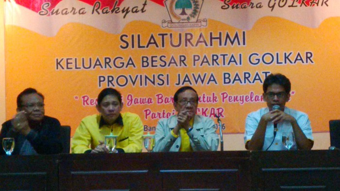 Akbar Tandjung hadir dalam acara 'Silaturahmi Keluarga Besar Partai Golkar Provinsi Jabar' di kantor DPD Partai Golkar Jabar, Jalan Maskumambang, Kota Bandung, Kamis malam (14/1/2016). Kegiatan silaturahmi ini mengusung tema 'Resolusi Jawa Barat Untuk Penyelamatan Partai Golkar'.